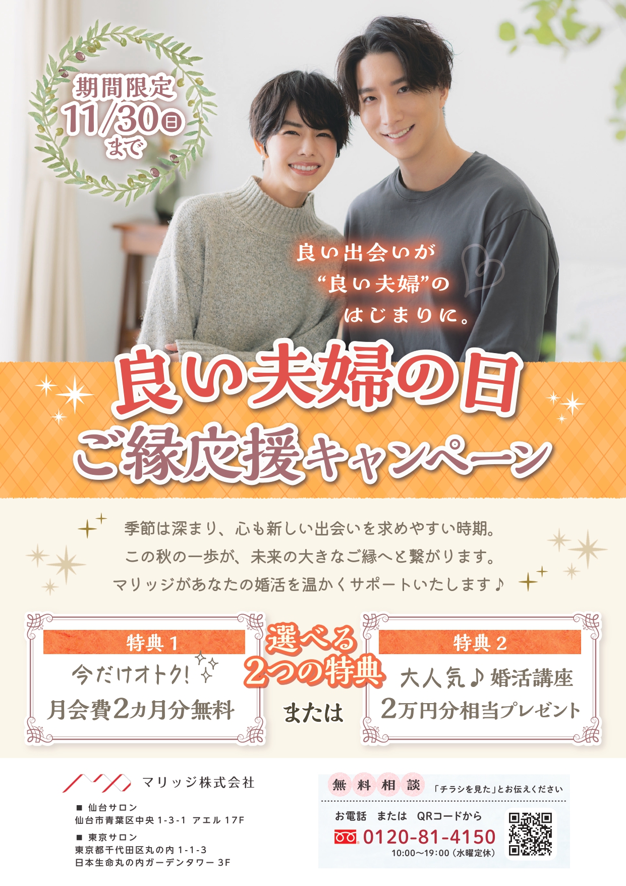 マリッジでは、11月限定のご縁応援キャンペーンを開催!