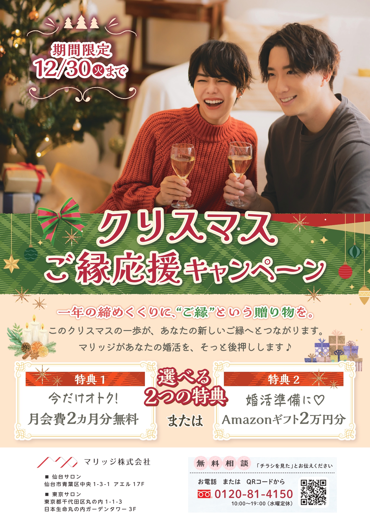 マリッジでは、12月限定のご縁応援キャンペーンを開催!